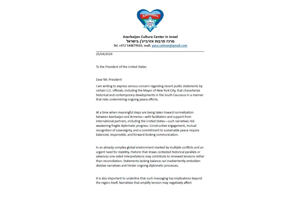 Məktublarda Nyu York merinin Azərbaycan xalqına qarşı səsləndirdiyi ittihamlarla bağlı ciddi narahatlıq ifadə edilib. Qeyd olunub ki, ABŞ-nin Azərbaycan və Ermənistan arasında sülh sazişini dəstəklədiyi, münasibətlərin normallaşdırılması istiqamətində beynəlxalq tərəfdaşların vasitəçiliyi ilə mühüm addımların atıldığı bir dövrdə bu cür qərəzli yanaşmalar konstruktiv prosesə mənfi təsir göstərə bilər. Eyni zamanda vurğulanıb ki, Qarabağ bölgəsində yaşayan erməni əsilli əhaliyə reinteqrasiya çərçivəsində bərabər hüquqlar və təhlükəsizlik təminatları təklif olunub, onların sosial-iqtisadi həyata inteqrasiyası üçün konkret addımlar atılıb. Mülki şəxslərə qarşı etnik zəmində hər hansı zorakılıq faktı qeydə alınmayıb və bu istiqamətdə beynəlxalq hüququn prinsiplərinə uyğun davranış sərgilənib. Məktublarda, həmçinin Xocalı faciəsinin ağır nəticələri xatırladılaraq, bu hadisəyə hələ də beynəlxalq səviyyədə hüquqi-siyasi qiymətin verilmədiyi diqqətə çatdırılıb.